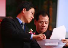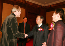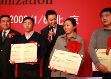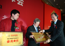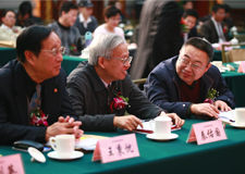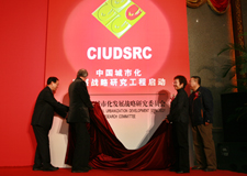 建设部科学技术委员会常务副主任、原建设部总工程师 金德钧先生;建设部干部学院副院长张庆风先生;世界(法国)著名建筑设计室德尼斯?岚明先生;北京依莲轩房地产开发有限责任公司总经理刘博女士,上台为中国城市化发展战略研究工程启动揭幕!