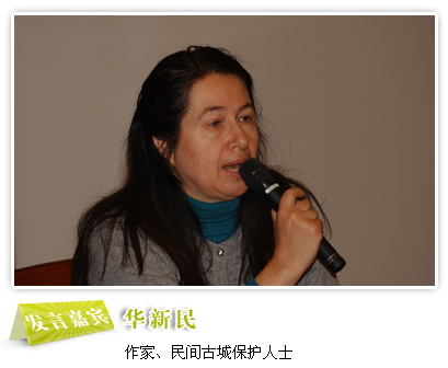 我经常接到华新民女士的电子邮件,她往往描述在旧城改造过程中经历的种种困难,怎么与开发商做斗争。今天这里坐了许多的开发商,我原以为华新民在这儿肯定要与开发商打起来,会怒目而视,我也看了华新民女士的书,她寄给我一本。我非常敬佩她在保护北京的旧城,老胡同这方面做出的巨大的努力。