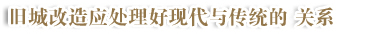 关于旧城改造主要处理好两个方面的关系,一个是现代与传统的关系,也就是刚才韩先生所说的,我们的城市目前是过于追求现代化,千城一面,失去它的个性,甚至也失去了其旅游价值,许多外国人到中国一来看,中国的城市其实都是一样的,没有什么可看的。可看的是一些历史古迹,一些历史古迹与城市之间是互不融合的,城市都是非常阳派,其中夹杂着一两个历史古迹,显得非常的不协调。这是一方面追求的现代性,另一方面,对传统的保护是非常不利的。我刚才说华新民女士在这方面努力的确是值得大家钦佩,如果……